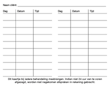 Afspraak kaarten met ProVoet logo. Hiermee herinner je je cliënten op duidelijke en stijlvolle wijze aan nieuwe afspraken. Vaak vermindert dit afzeggingen. Je patiënten hebben er gemak van en jijzelf ook! Set van 50 stuks.