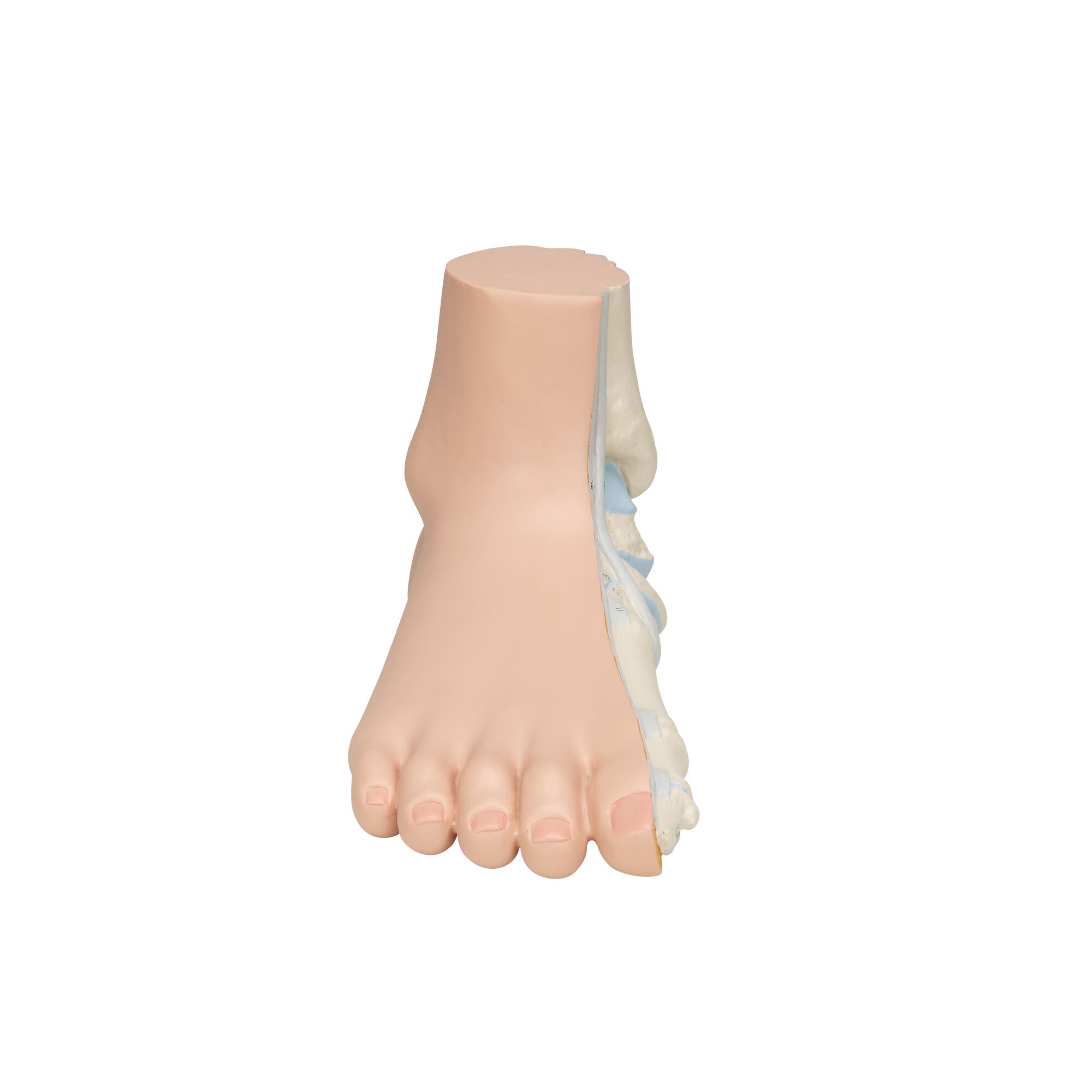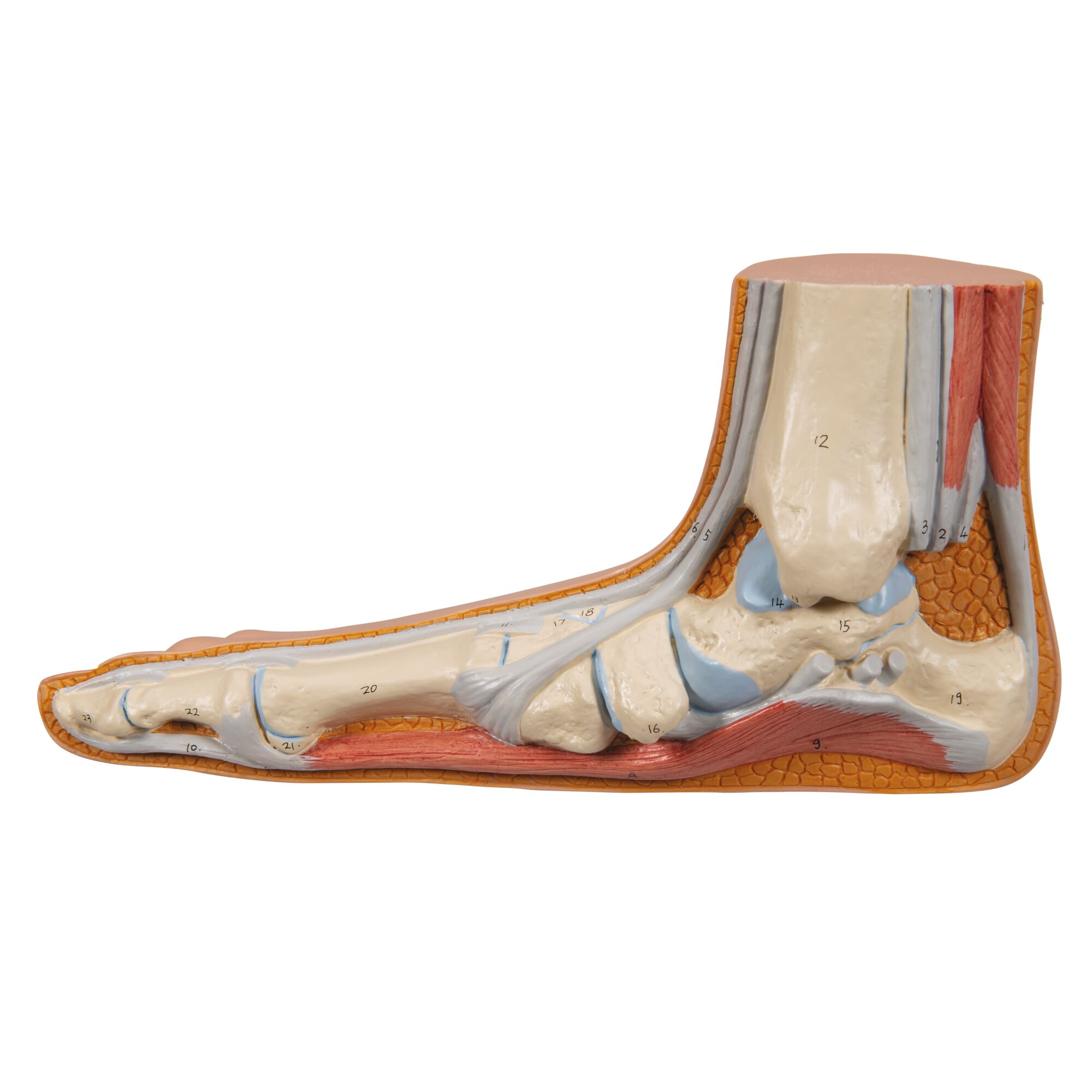 Dit anatomiemodel is een doorsnede van een platvoet. De interne botten, spieren, ligamenten en zenuwen zijn hierop zichtbaar. Ideaal te gebruiken in combinatie met de ‘Normale voet’ (als referentie) en de ‘Holvoet’ (beiden tevens afzonderlijk verkrijgbaar). Onmisbaar in de praktijk en het onderwijs.