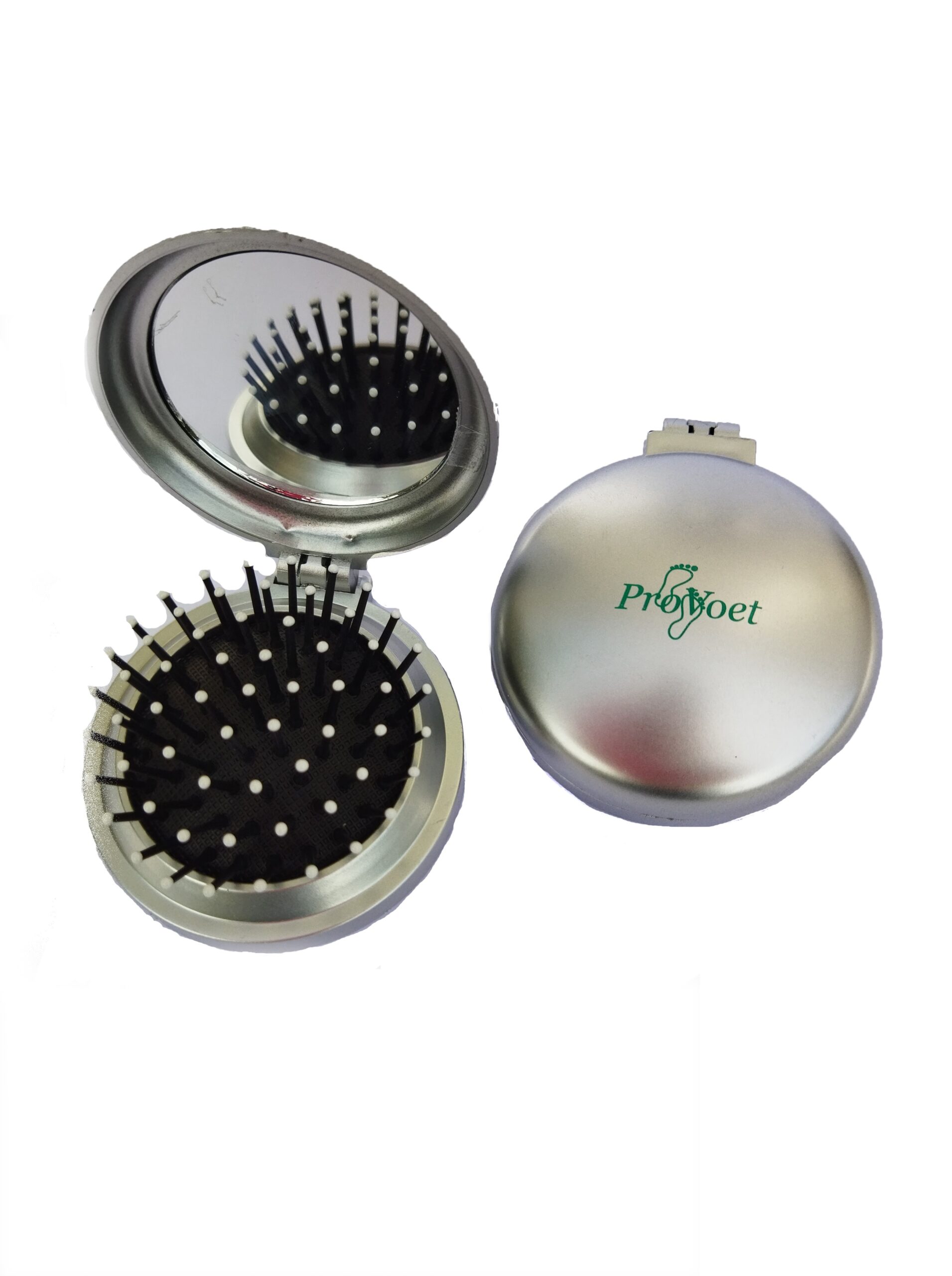 Deze inklapbare haarborstel met spiegel neem je handig mee in je tas zodat je onderweg altijd even je kapsel en make-up kunt bijwerken.