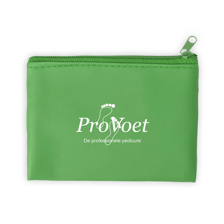 Deze portemonnee heeft een ritssluiting en binnenin een sleutelring. Uitgevoerd in fris groen en voorzien van het ProVoet-logo.