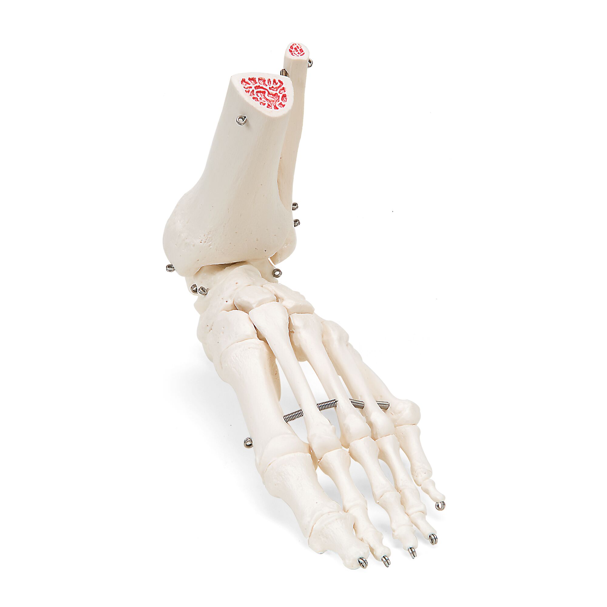 Rechter voet, enkel skelet, met onderste deel van het scheen- en kuitbeen. Een realistisch anatomisch model, met flexibele gewrichten door de elastische verbindingskoorden. Ideaal voor demonstratie en zelfstudie.